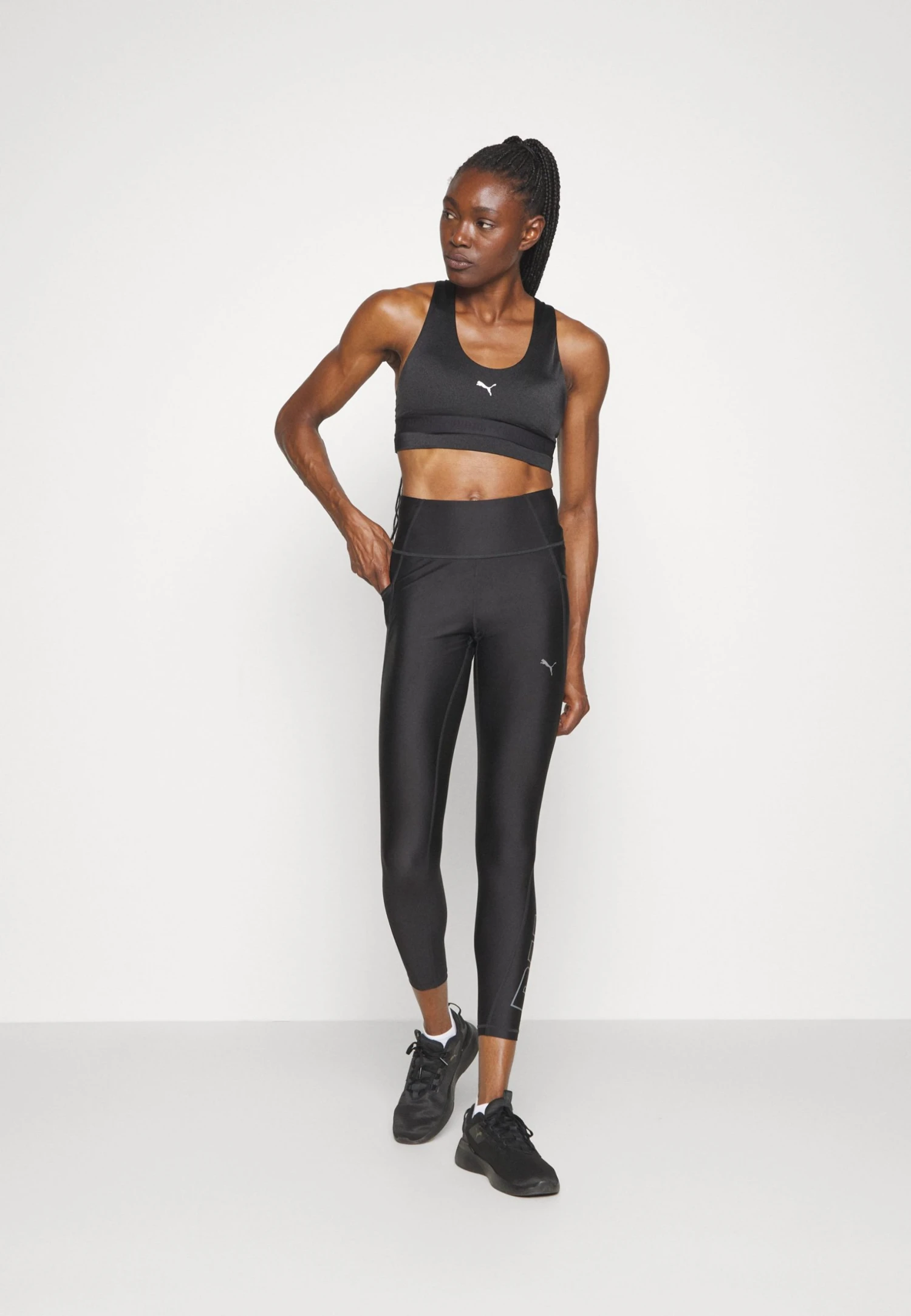 Puma Mid Impact Strong Shine Bra – Medium Support Sports Bra – Black